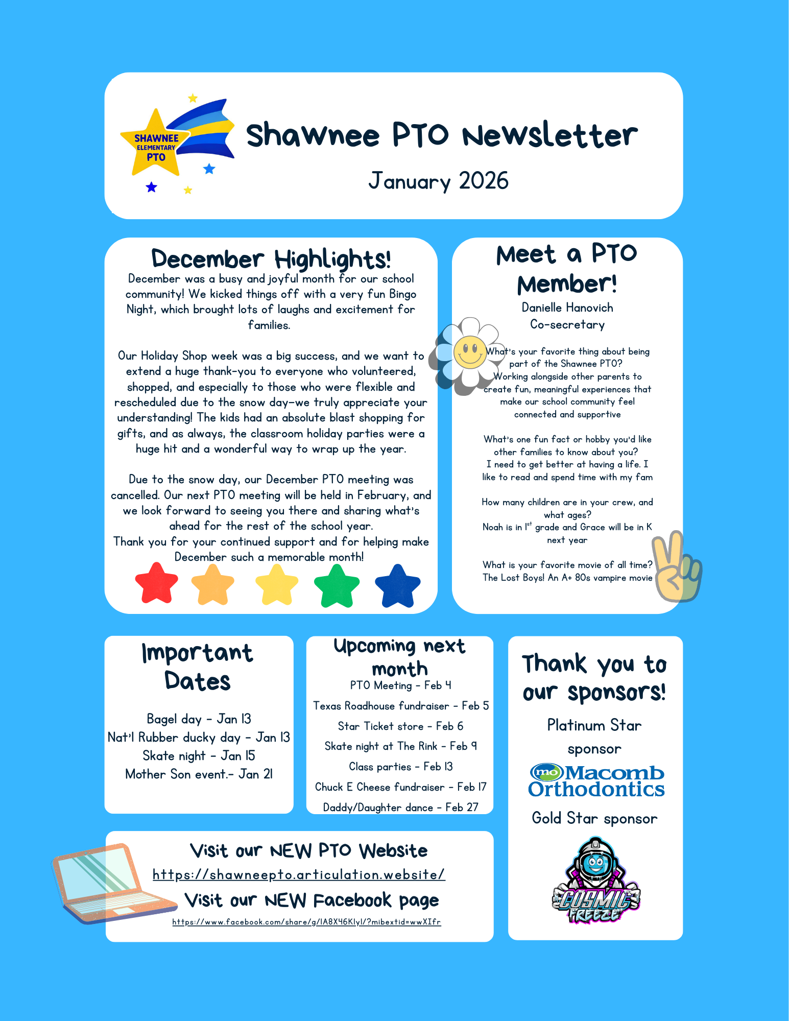 Stay informed and up to date with everything happening in the PTO! On this page, you’ll find meeting minutes from past PTO meetings as well as our monthly newsletters. These resources include important updates, event details, decisions made, and ways you can get involved. It’s a great way to stay connected, even if you can’t attend every meeting!